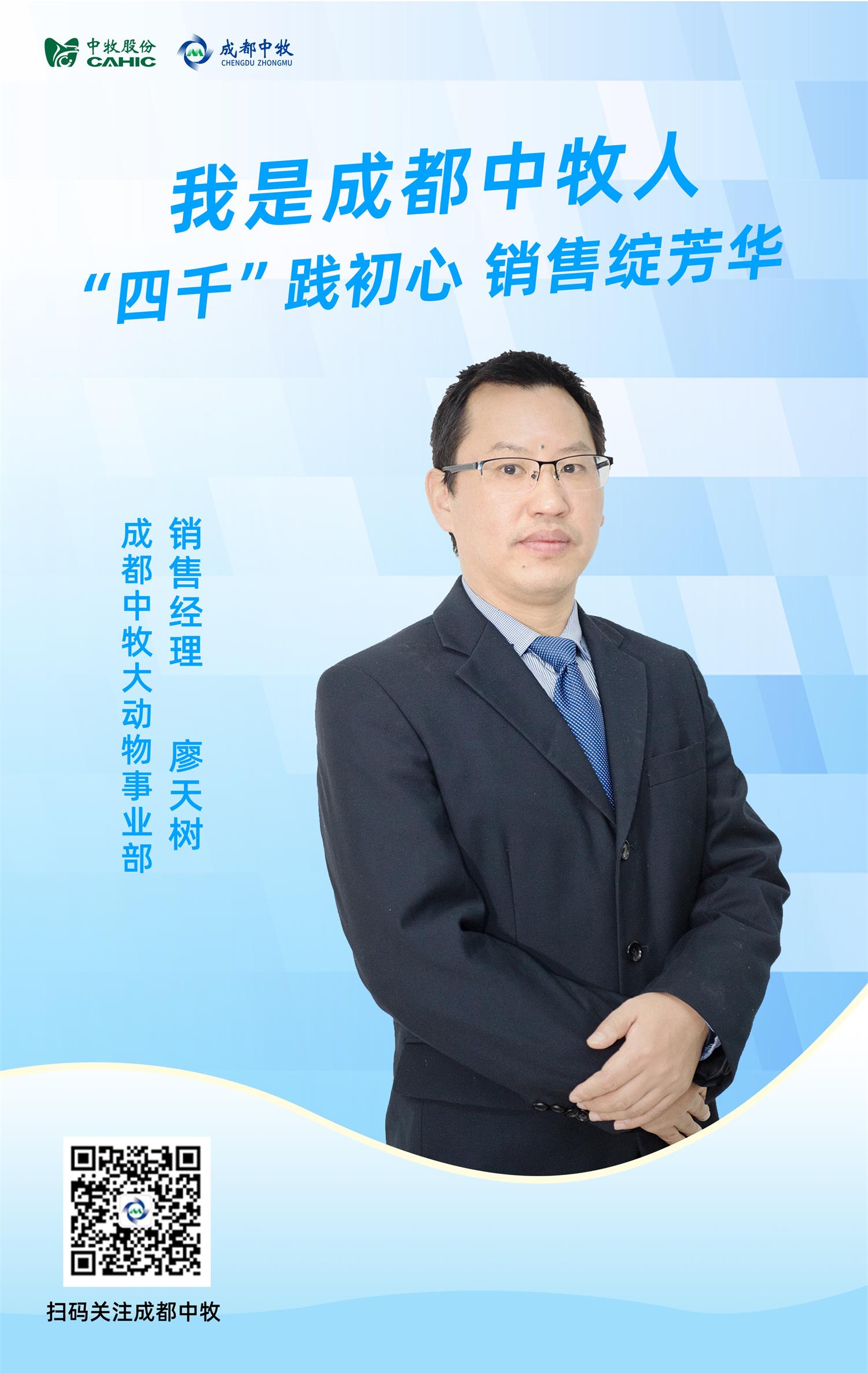 在成都中牧,有這樣一位銷售人員廖天樹,他用實際行動詮釋著成都中牧“四千”營銷人的精神,在平凡崗位上綻放出耀眼光芒。